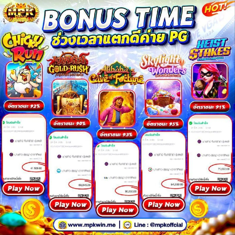 ที่น่าสนใจไปกว่านั้น การรับโบนัสที่ MPKWIN ไม่ได้ยุ่งยากซับซ้อนเหมือนเว็บอื่นๆ เพียงแค่สมัครสมาชิกใหม่ ทำการยืนยันตัวตน และฝากเงินครั้งแรกตามเงื่อนไขที่กำหนด คุณก็จะได้รับโบนัสทันทีโดยไม่ต้องรอนาน โดยสามารถนำโบนัสไปใช้ได้กับเกมทุกประเภทในเว็บ ไม่ว่าจะเป็นคาสิโนสด สล็อต กีฬา หรือเกมอื่นๆ